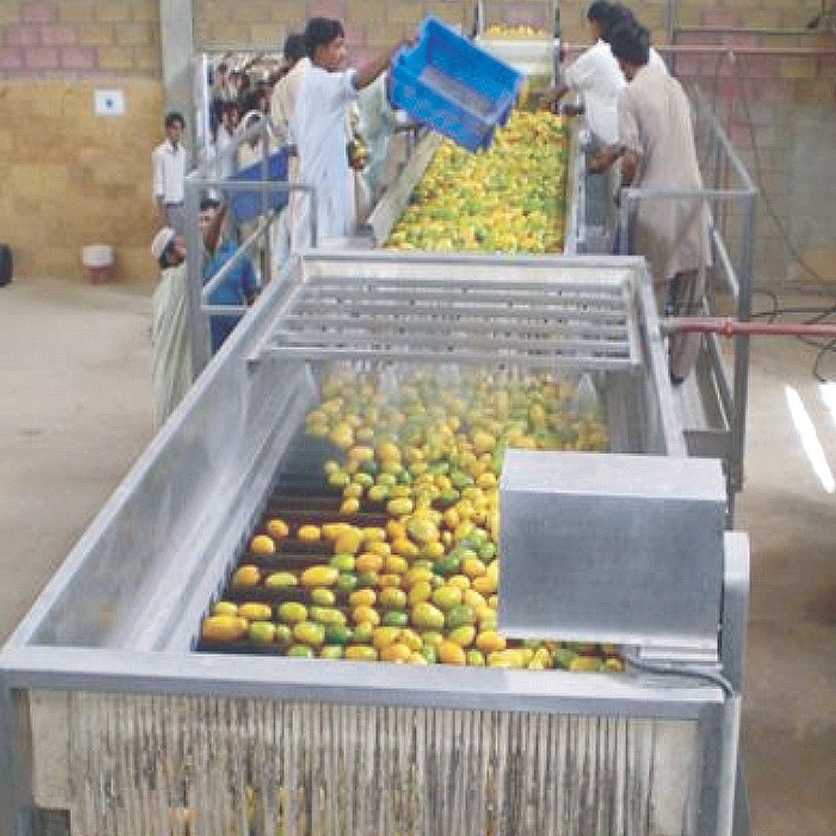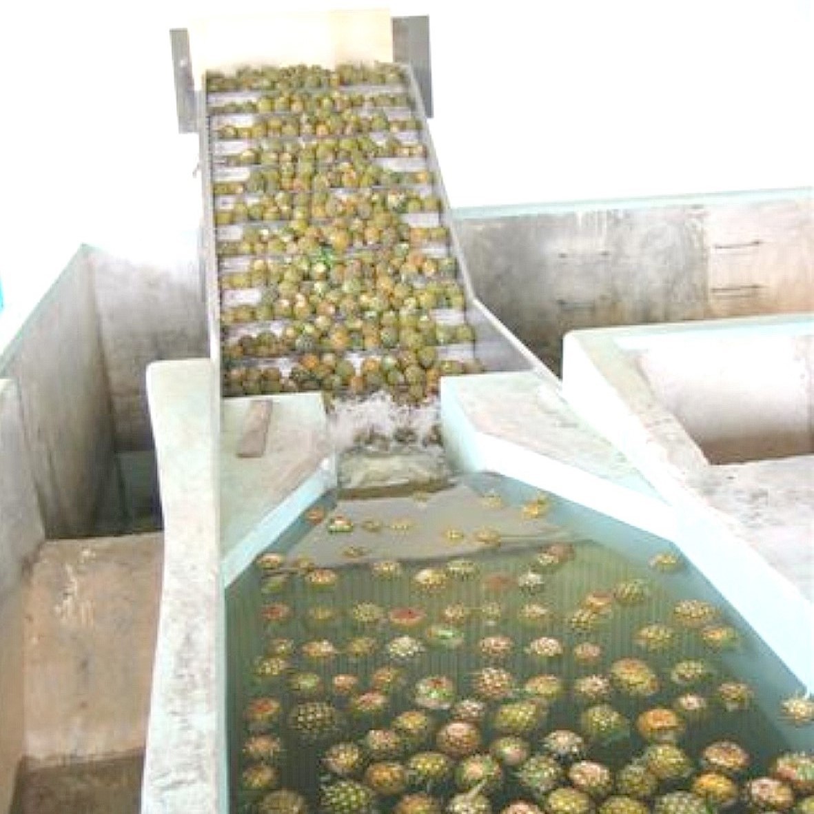 파인애플 주스 가공 라인의 세척 공정